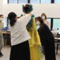 モデルさんに衣装を着てもらい、サイズやバランスなどを確認する「衣装合わせ」が行われました。