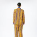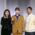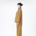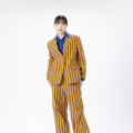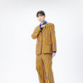 川合さんのテキスタイルはハンバーガーやダイナーのポップから着想を得て、ネット社会で溢れかえる情報の中、誤った情報に騙されないで!というメッセージを込めてトロンプルイユのようなストライプに落とし込んでいます。